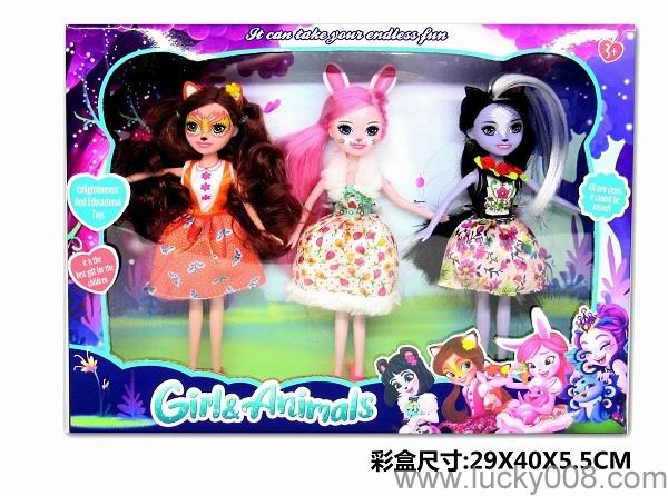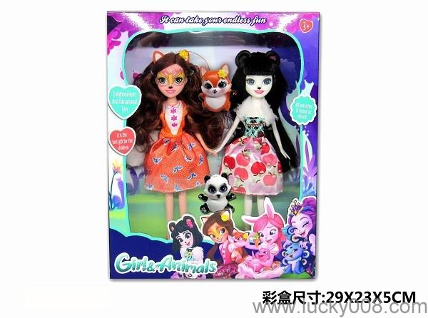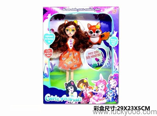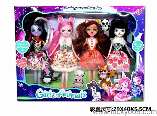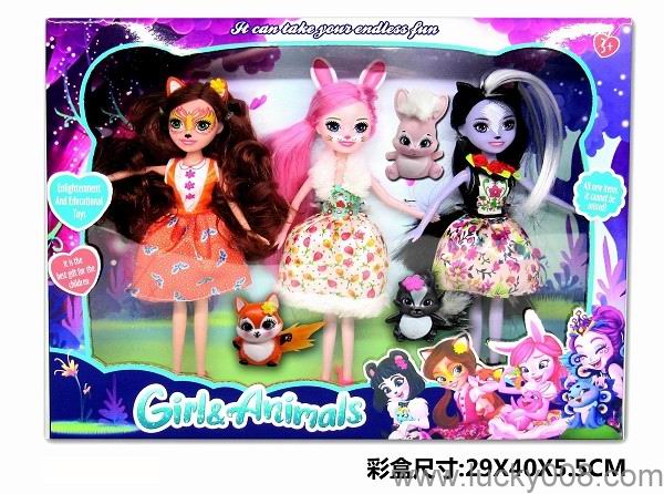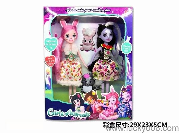 9 inch solid pet girl with pet enchatimals, panda rabbit, squirrel, skunk Princess |