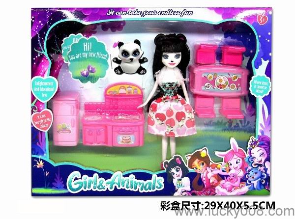 9 inch solid pet girl enchatimals with pet furniture panda Princess |