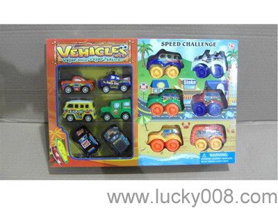 6只庄明苯镀座回力车+路标 |