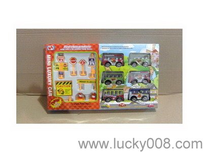 6只庄喷漆卡通回力车+路标 |