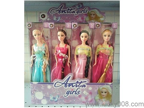 11.5寸长发辫子公主实身活手+梳镜4款 |