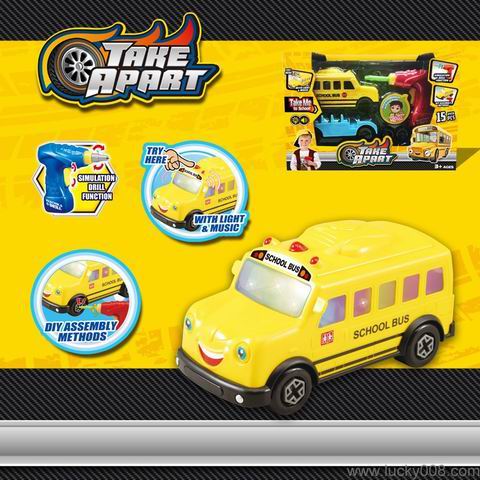 电钻声光自装校巴 电钻2*AA不包 车体2*AA包电 |