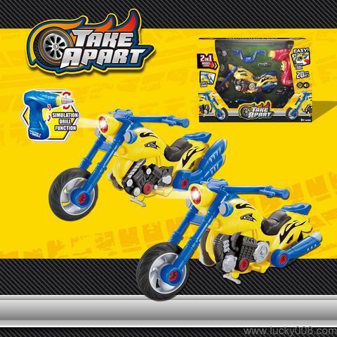 电钻声光自装摩托车 电钻2*AA不包 车体2*AG13包电 |