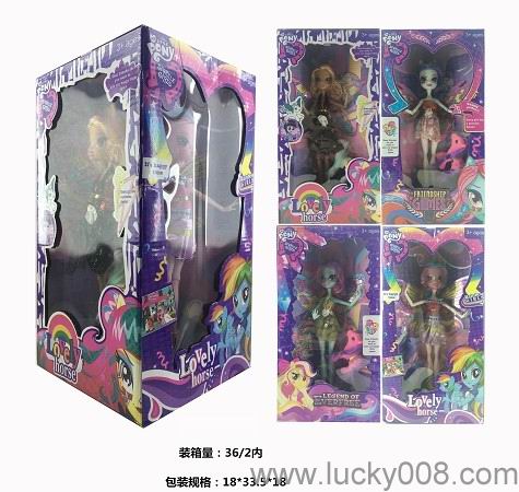 11寸实身马妹带翅膀配搪胶小马 四面窗盒四只装 (多款衣服随机混装) |