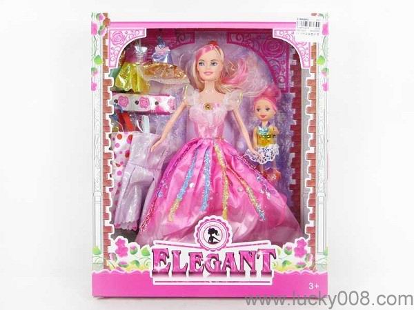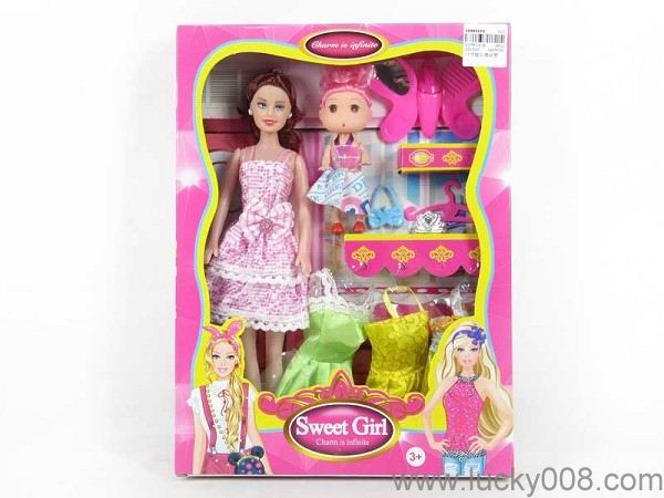 高挡11.5寸实身大裙芭比带三寸实身凯莉带6件衣服 |