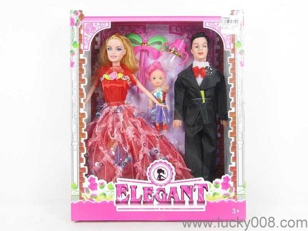 高挡11.5寸实身芭比一家三口带面具带奶瓶 |