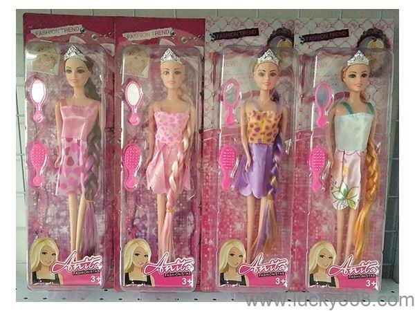 11.5寸长发辫子公主实身活手+梳镜4款 |
