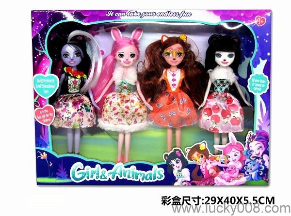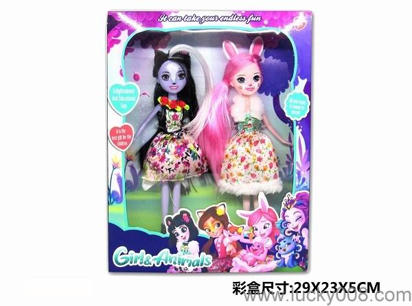 9寸实心宠物女孩enchatimals带宠物 小兔 松鼠 臭鼬公主 |