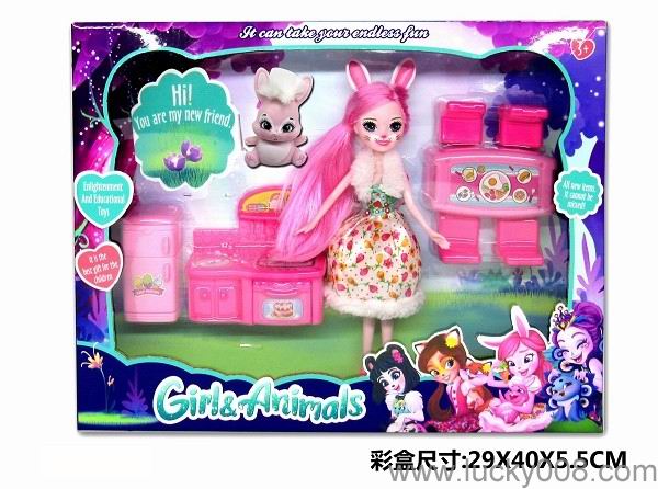 9寸实心宠物女孩enchatimals带宠物家具 小兔公主 |