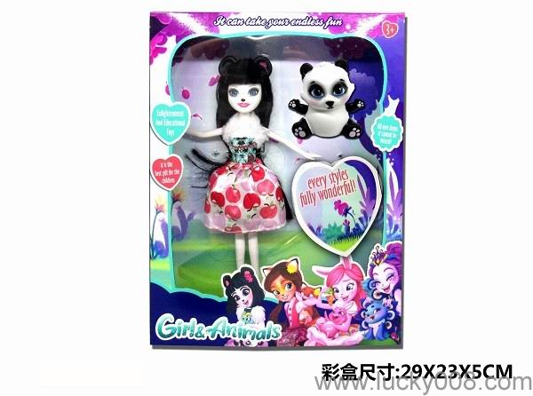 9寸实心宠物女孩带宠物enchatimals 熊猫公主 |