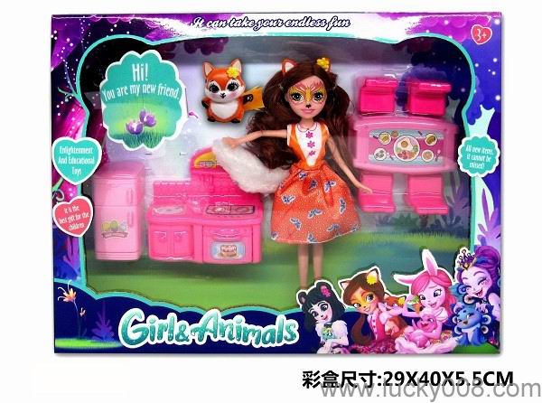 9寸实心宠物女孩enchatimals带宠物家具 松鼠公主 |