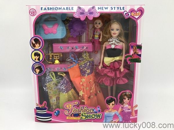 高挡11.5时尚空身芭比+3.5寸小孩带大手提包帽子带5套衣服 |