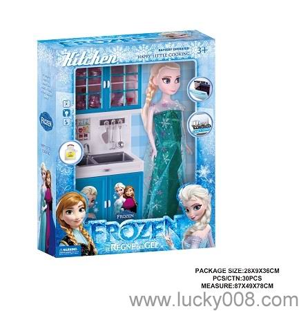 冰雪奇缘 蓝色实色厨房、厨具组合+芭芘 |
