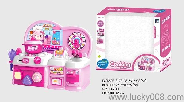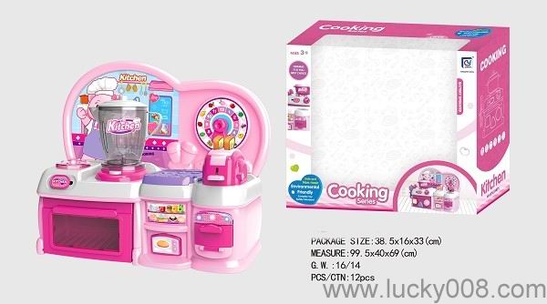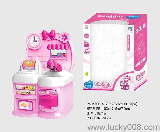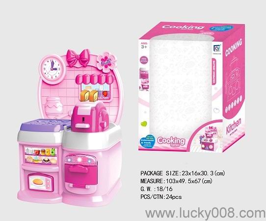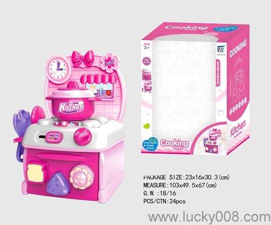 卡通粉红色益智厨房、厨具组合 |
