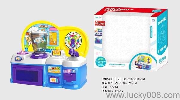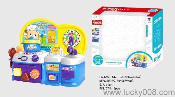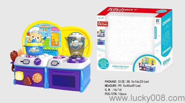 卡通蓝色益智厨房、厨具组合 |