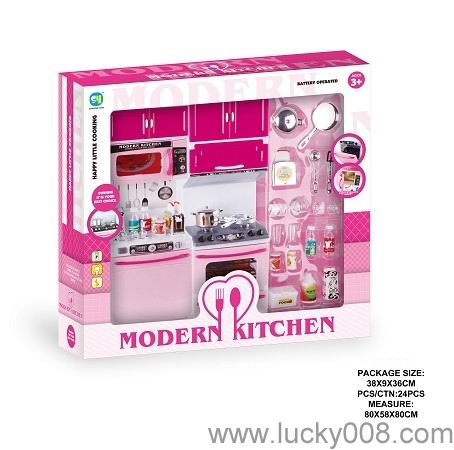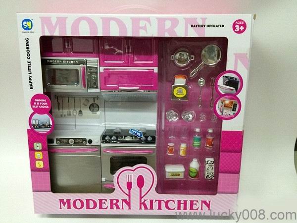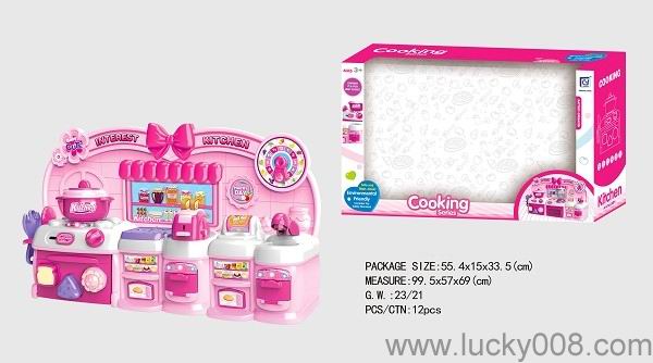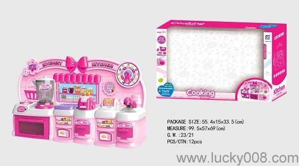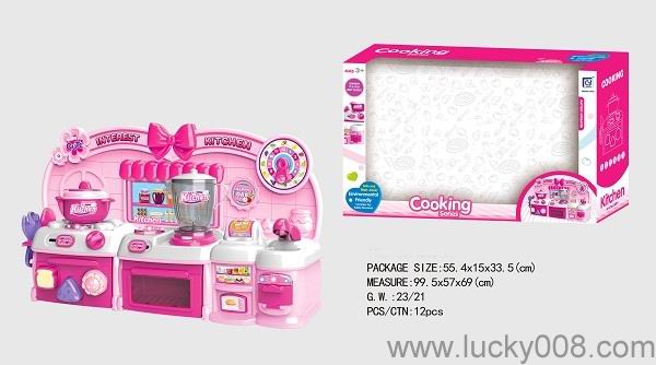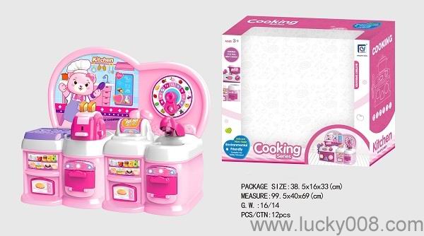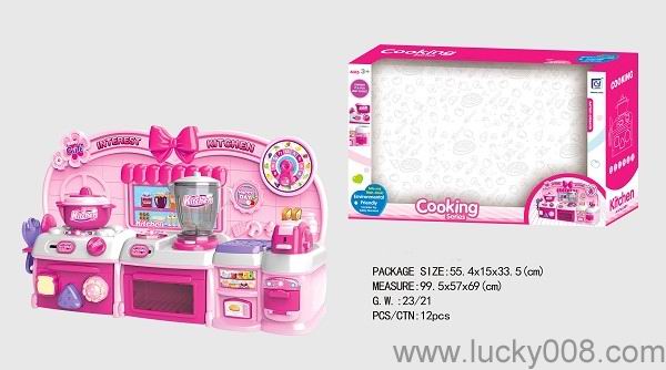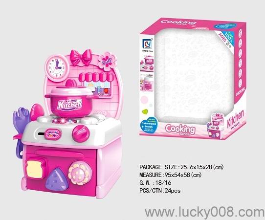 卡通粉红色益智厨房、厨具组合 |