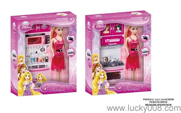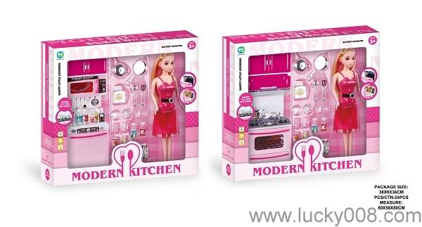 粉红色喷漆厨房、厨具组合+芭芘(2款混装) |