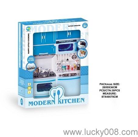 蓝色实色厨房、厨具组合+芭芘 |